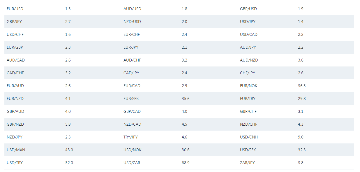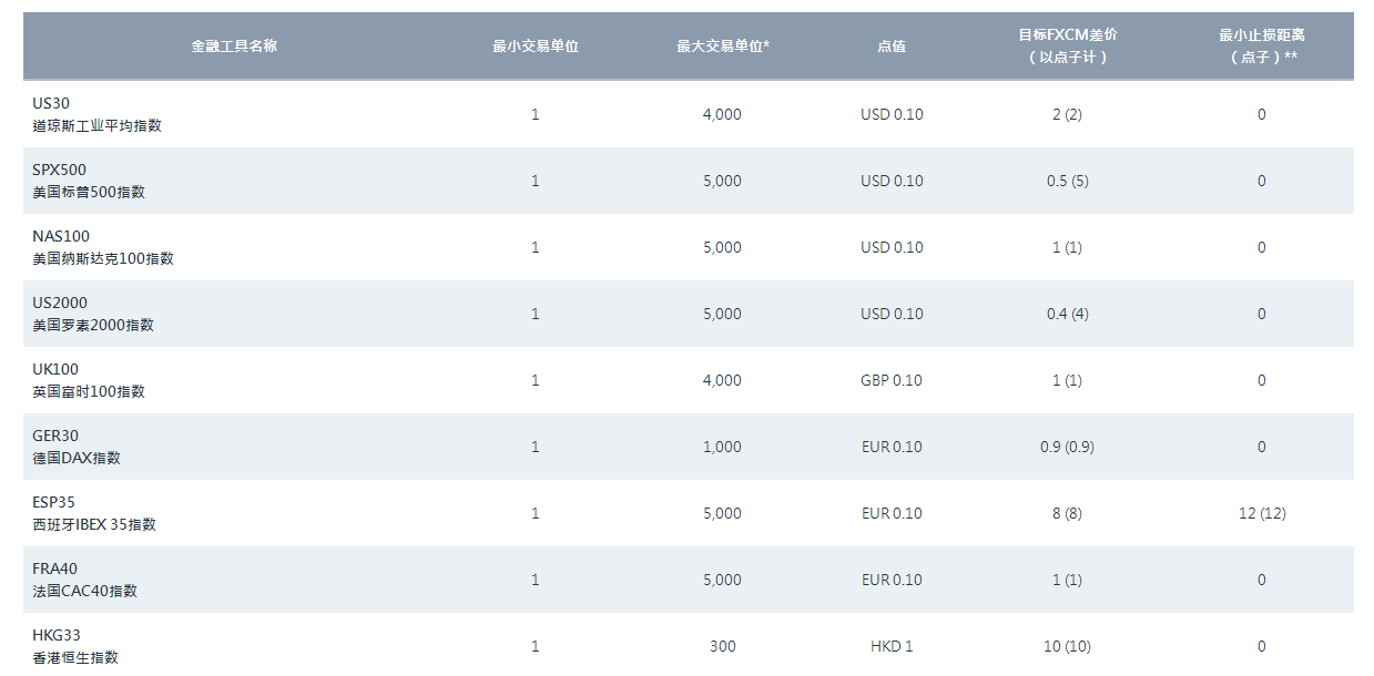 --FXCM福汇平台点差详情--